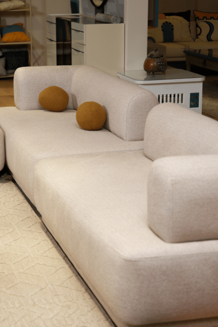 Parce qu’un bel intérieur est une source inépuisable de bonheur, on vous présente »𝗦𝗲́𝗷𝗼𝘂𝗿 "JERBA Bleu" , Modele "U" du confort et de design au cœur de votre salon, 260/350/260 cm, carcassebois rouge mousse 28/30 avec 12 coussins artisanaux brodés et rembourrés en ouate