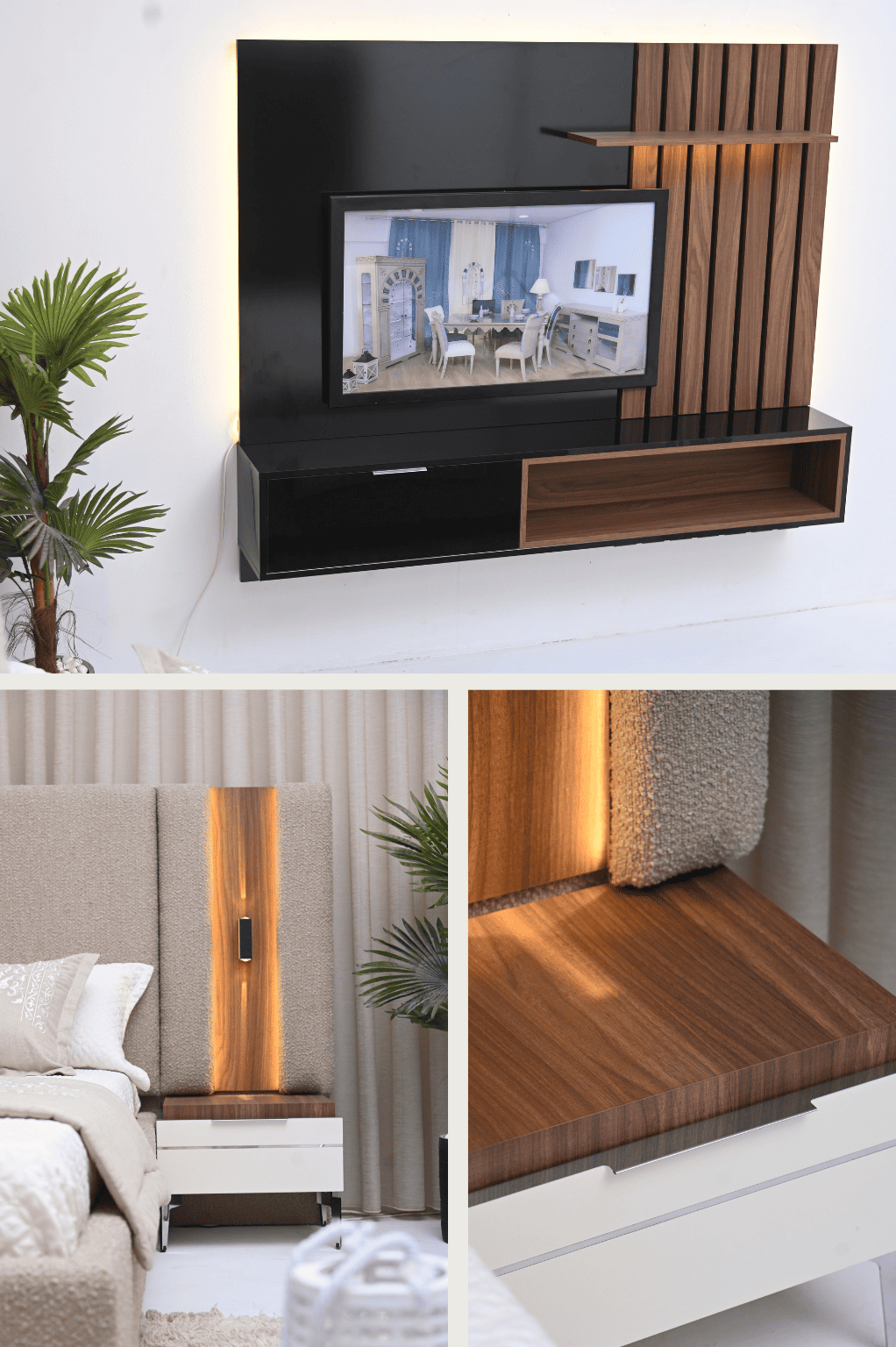 LIT + 2 TABLES DE NUIT:2680dt COMMODE ASSALA :1500dt BUREAU ASSALA: 1500dt