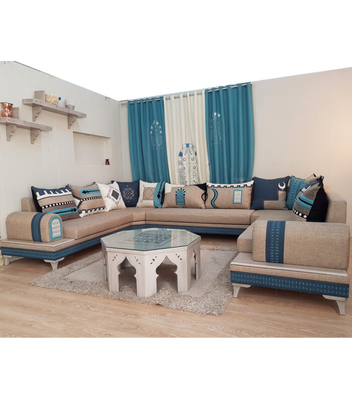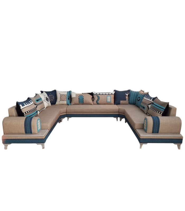 Forme en « 𝐔 », avec 12 coussins artisanaux brodés et rembourrés en ouate, du confort et de design au cœur de votre salon.