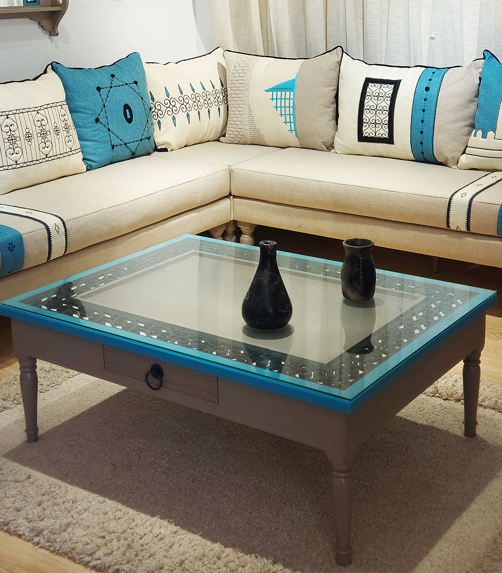 Parce qu’un bel intérieur est une source inépuisable de bonheur, on vous présente '' 𝗦𝗲́𝗷𝗼𝘂𝗿 '' ASSALA '' du confort et de design au cœur de votre salon, 270/270 cm, carcasse bois rouge mousse 28/30 avec 6 coussins artisanaux brodés et rembourrés en ouate le prix est 3800dt.